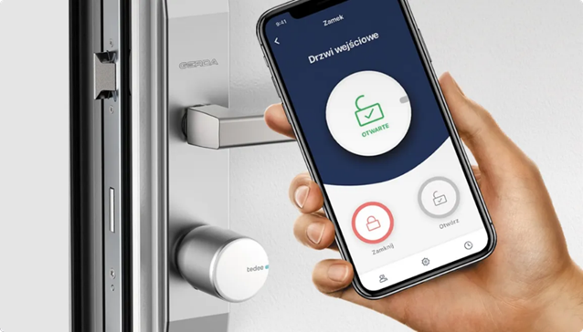 To inteligentny zamek, który pozwala otwierać drzwi za pomocą smartfona, nadawać dostępy zdalnie i monitorować, kto oraz kiedy otwierał drzwi. Zapewnia wysoki poziom bezpieczeństwa i wygodę.