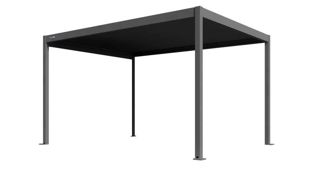 Konstrukcję pergoli wykonano z aluminium, które jest trwałe i odporne na korozję. Pergola radzi sobie z wiatrem do 10 w skali Beauforta, czyli bardzo silnym sztormem, oraz z obciążeniem śniegiem do 150 kg/m². Solidne profile konstrukcyjne, stabilne słupki i mocna belka dachowa zapewniają trwałość i bezpieczeństwo użytkowania przez cały rok.