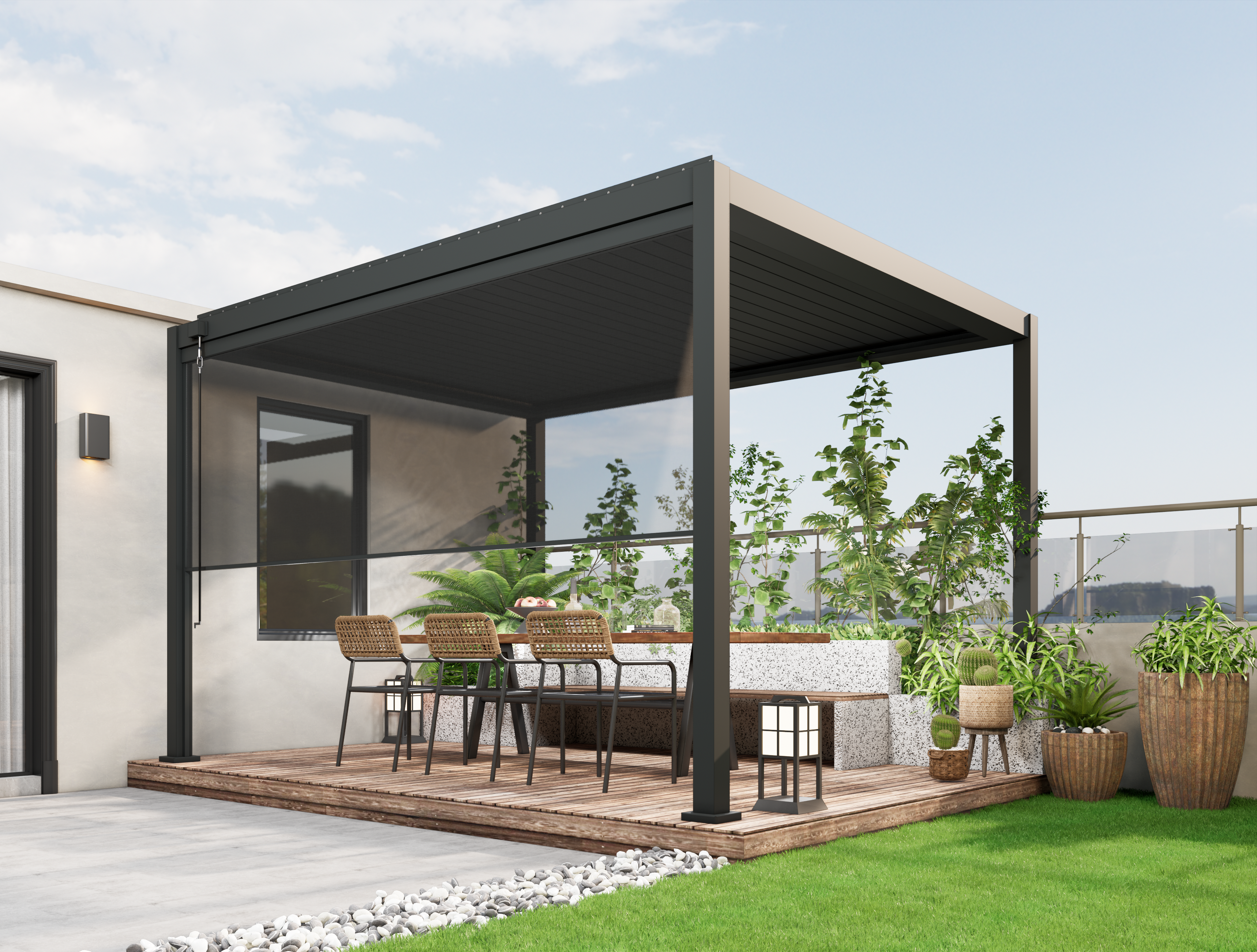 - Wybieraj pergole z wysokiej jakości aluminium, trwałe i odporne na korozję.