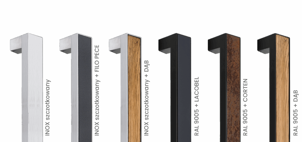Dostępne w kolorze INOX oraz czarnym, mogą zostać dodatkowo wyposażone w przycisk (np. do elektrozaczepu) lub podświetlenie LED, co nie tylko zwiększa funkcjonalność, ale też buduje wyjątkowy efekt wizualny po zmroku.