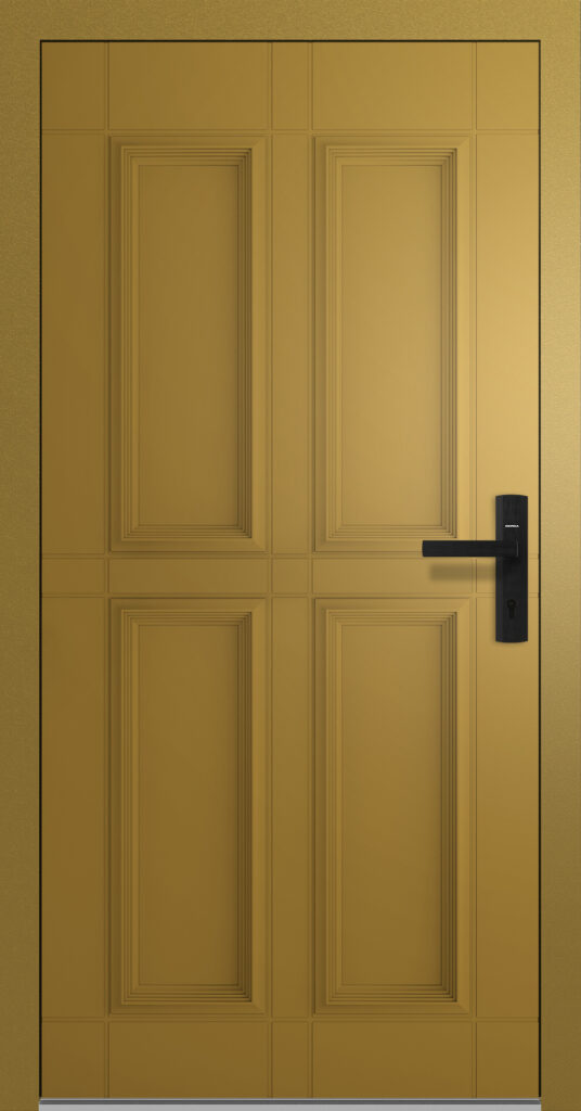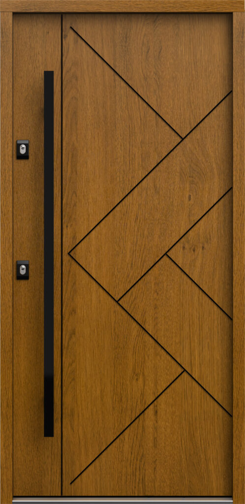 Doskonale odnajduje się w projektach, które balansują między klasyką a nowoczesnością. To drzwi o stonowanej, ale elastycznej estetyce. Dostępne zarówno w wersjach drewnopodobnych, jak i minimalistycznych, z delikatnymi przetłoczeniami i przeszkleniami. Świetnie komponują się zarówno z dworkowym gankiem, jak i nowoczesną elewacją z pionowymi deskami. Wysoka izolacyjność, możliwość indywidualnej konfiguracji i ponadczasowy wygląd czynią je uniwersalnym rozwiązaniem w mieszanym stylu architektonicznym.