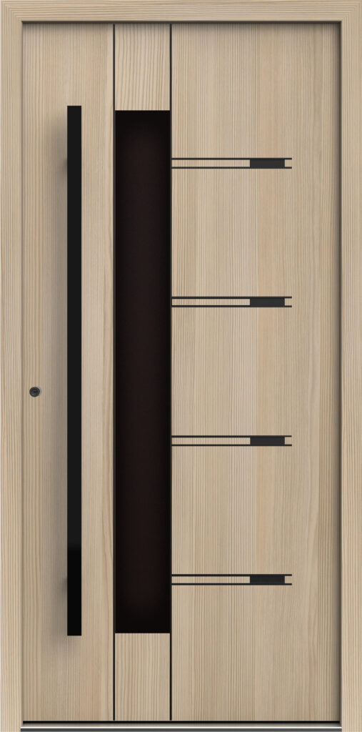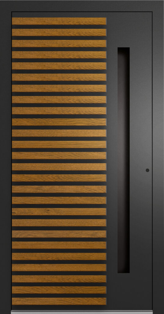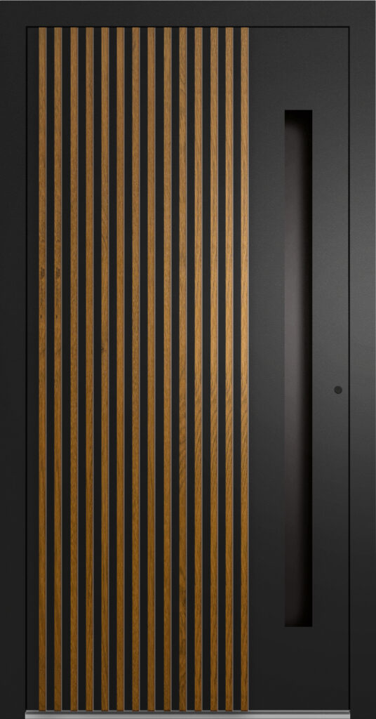 Doskonały wybór dla miłośników skandynawskiej prostoty, który oferuje subtelne wzornictwo z możliwością wprowadzenia delikatnych przeszkleń i naturalnych kolorów. Jasne laminaty i struktury drewna podkreślają ciepły, przytulny charakter domu, jednocześnie nie przytłaczając formą. Solidna konstrukcja z niskim współczynnikiem UD i systemem ALUTHERM 75 sprawia, że drzwi te skutecznie chronią przed chłodem i hałasem. Szczególnie ważnym w zabudowie szeregowej lub miejskiej.