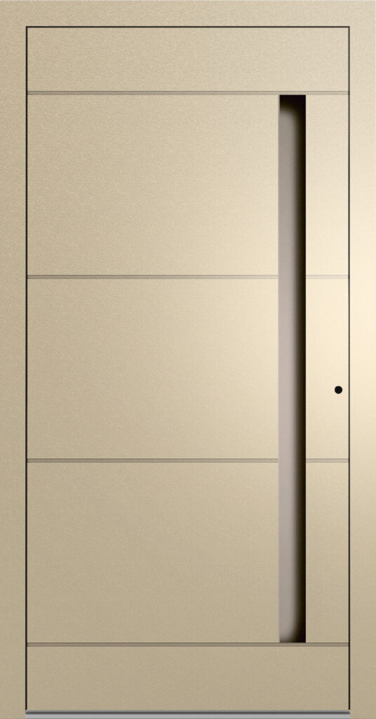 Drzwi z tej linii to kwintesencja nowoczesnego minimalizmu. Gładkie powierzchnie, zlicowane przeszklenia i ukryte zawiasy tworzą jednolitą, geometryczną formę, idealnie wpisującą się w nowoczesne bryły domów. Paleta metalicznych wykończeń, możliwość montażu podświetlanych pochwytów LED czy klawiatury biometrycznej podkreśla technologiczny charakter tej serii. Technicznie to najwyższy poziom. Aluminiowa konstrukcja o grubości 77 mm, UD od 0,7 W/m²K i klasa RC2 zapewniają komfort, bezpieczeństwo i trwałość na lata.