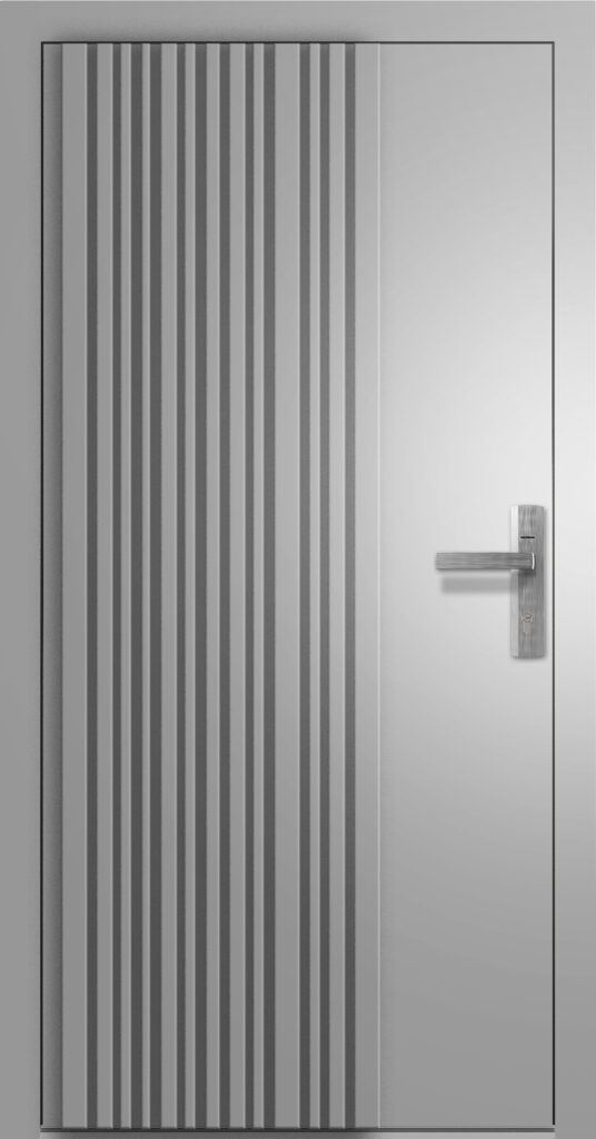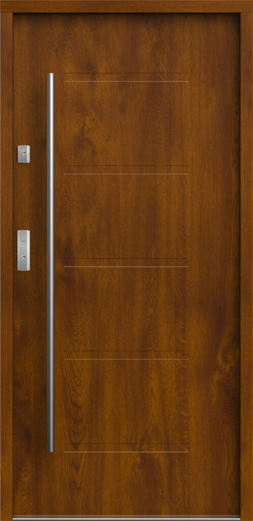 Linia ta doskonale wpisuje się w nowoczesną architekturę dzięki szerokiej gamie wzorów. Od gładkich, jednolitych skrzydeł po minimalistyczne aplikacje i wąskie przeszklenia. Drzwi te wyróżnia wysoka jakość wykonania i opcjonalny zamek listwowy, który nie zakłóca czystości formy. Technicznie to izolacyjność nawet do 0,79 W/m²K, czteroprzylgowa konstrukcja i antywłamaniowość w klasie RC2/RC3. To rozwiązanie godne nowoczesnych domów o wysokim standardzie.