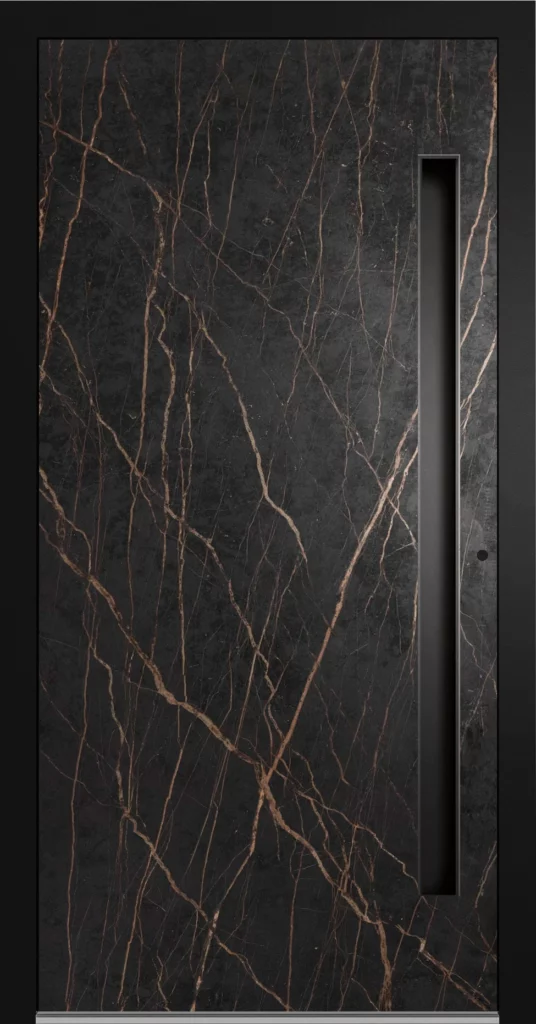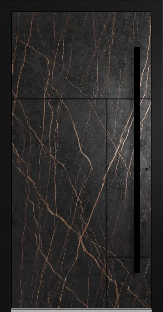 W przypadku drzwi wejściowych stosuje się go jako zewnętrzną okładzinę skrzydła. Kilka milimetrów materiału wystarcza, by uzyskać efekt jednolitej tafli kamienia lub betonu, bez zwiększania masy drzwi. Dzięki temu drzwi ze spiekiem kwarcowym zachowują pełną funkcjonalność, a jednocześnie zyskują nowoczesny, luksusowy wygląd. Bogactwo kolorów i struktur od marmuru, przez beton architektoniczny, po efekt metalu pozwala idealnie dopasować drzwi do stylu domu i elewacji.