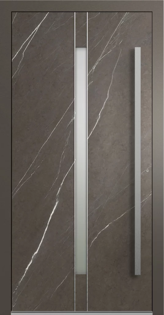 Pietra nawiązuje do naturalnego kamienia w jasnej, stonowanej tonacji, oferując spokojny i ponadczasowy efekt wizualny. Drzwi w tym wykończeniu są eleganckie, ale nienachalne, dzięki czemu harmonijnie wpisują się w bryłę budynku. Świetnie sprawdzają się w nowoczesnych domach jednorodzinnych, projektach minimalistycznych oraz tam, gdzie elewacja łączy jasne tynki z drewnem lub naturalnymi materiałami.