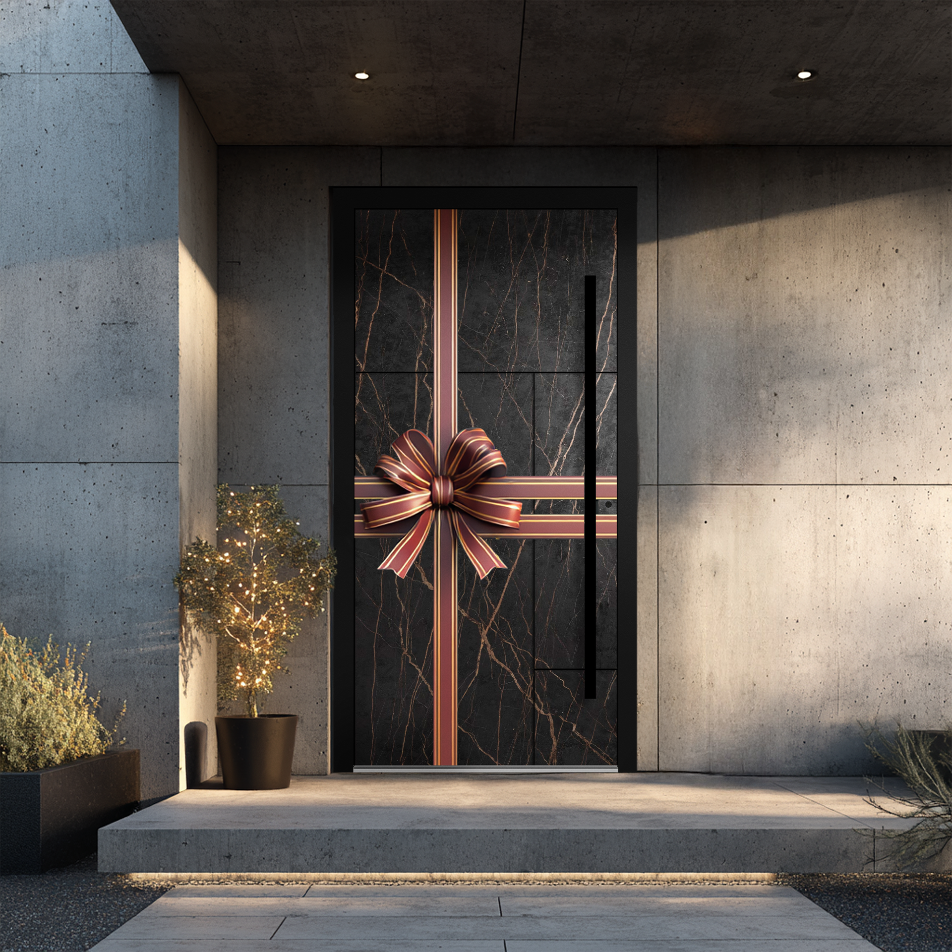 Pomysłów na udekorowanie świątecznego wejścia jest naprawdę mnóstwo. Od klasycznych wieńców, przez kokardy i girlandy, po całkowicie nieszablonowe aranżacje. I nieważne, czy Twoje drzwi są duże czy małe, nowe czy starsze, wykończone drewnopodobną okleiną czy w nowoczesnym aluminium. Każde można zmienić w zachwycającą bramę do świątecznego świata. Ogranicza nas tylko wyobraźnia. Świąteczne drzwi to świetne „płótno”, a przestrzeń wokół nich aż prosi się o dodatkowe ozdoby: lampiony, światełka, stroiki, minichoinki. Jeśli masz schody lub ganek yo również włącz je do aranżacji, ustawiając latarenki, figurki czy świetlne dekoracje. A jeśli mieszkasz w domu z ogródkiem, możesz stworzyć jeszcze bardziej efektowną oprawę. Lampki na krzewach, podświetlane figury czy wieczorne iluminacje sprawią, że świąteczny nastrój będzie widoczny już z daleka.