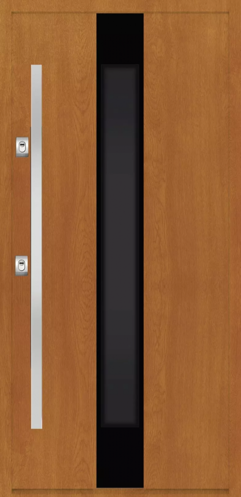 Drzwi wejściowe THERMO PREMIUM charakteryzuje wypełnienie izolacyjne, przegroda termiczna w skrzydle oraz ciepła ościeżnica aluminiowa, dzięki czemu produkt osiąga niski poziom współczynnika przenikalności cieplnej. To zatem nie tylko estetyczne, ale również praktyczne rozwiązanie. Takie drzwi w połączeniu z bramą garażową Classic lub Trend idealnie nadają się do energooszczędnego domu.