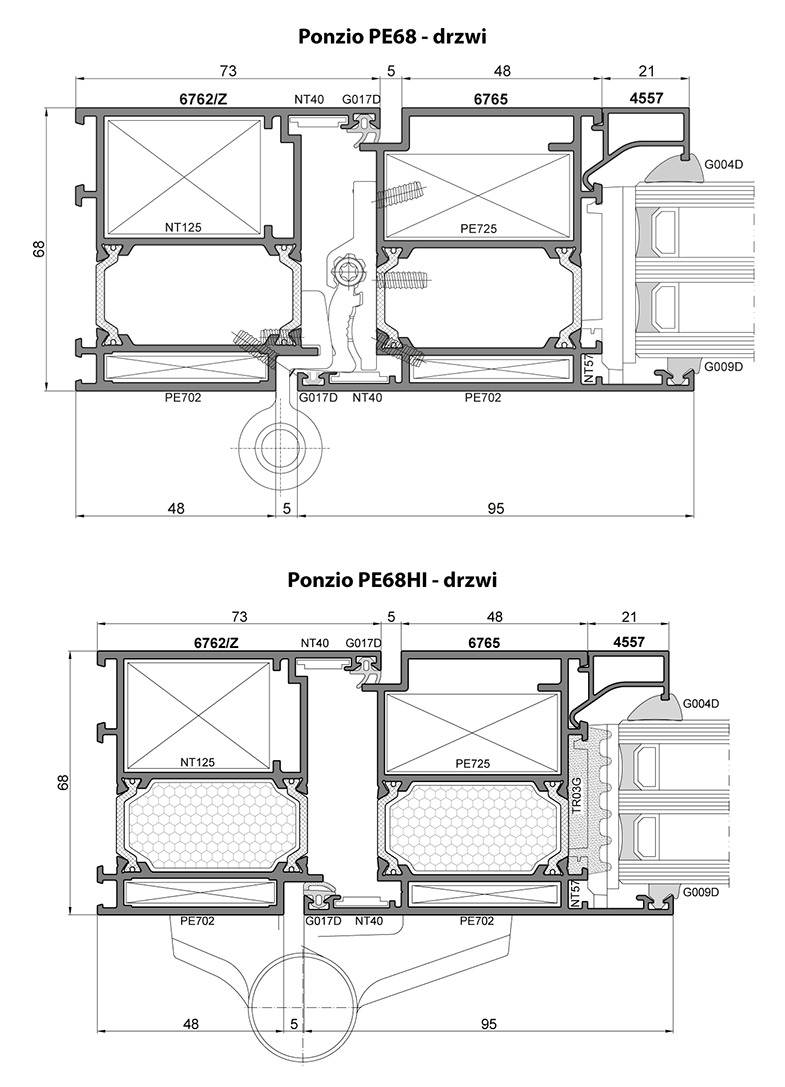 | Izolacyjność termiczna: | PE68: U od 2,1 W/(m²K), U od 1,13 W/(m²K) PE68HI: U od 1,8 W/(m²K), U od 1,06 W/(m²K) |