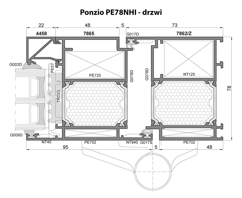 - różne warianty izolacyjności termicznej, w zależności od zastosowanych wkładów izolacyjnych: PE78N+, PE78NHI