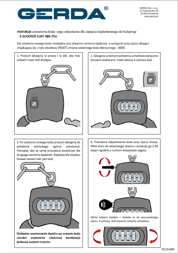 INSTRUKCJA ZMIANY KIERUNKU PRACY (PRAWY, LEWY) ZESPOŁU KLAMEK DRZWI – GERDA W, GERDA WD, GERDA WDT, GERDA WP 30