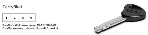 w zestawie: trzy klucze symetryczne frezowane CL12 oraz karta kodowa pozwalająca dorobić dodatkowe klucze w autoryzowanych punktach