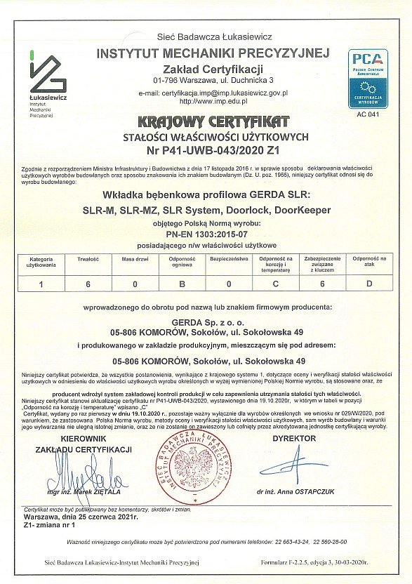 - NAJWYŻSZA KLASA BEZPIECZEŃSTWA 6.D zgodnie z normą EN 1303:2015