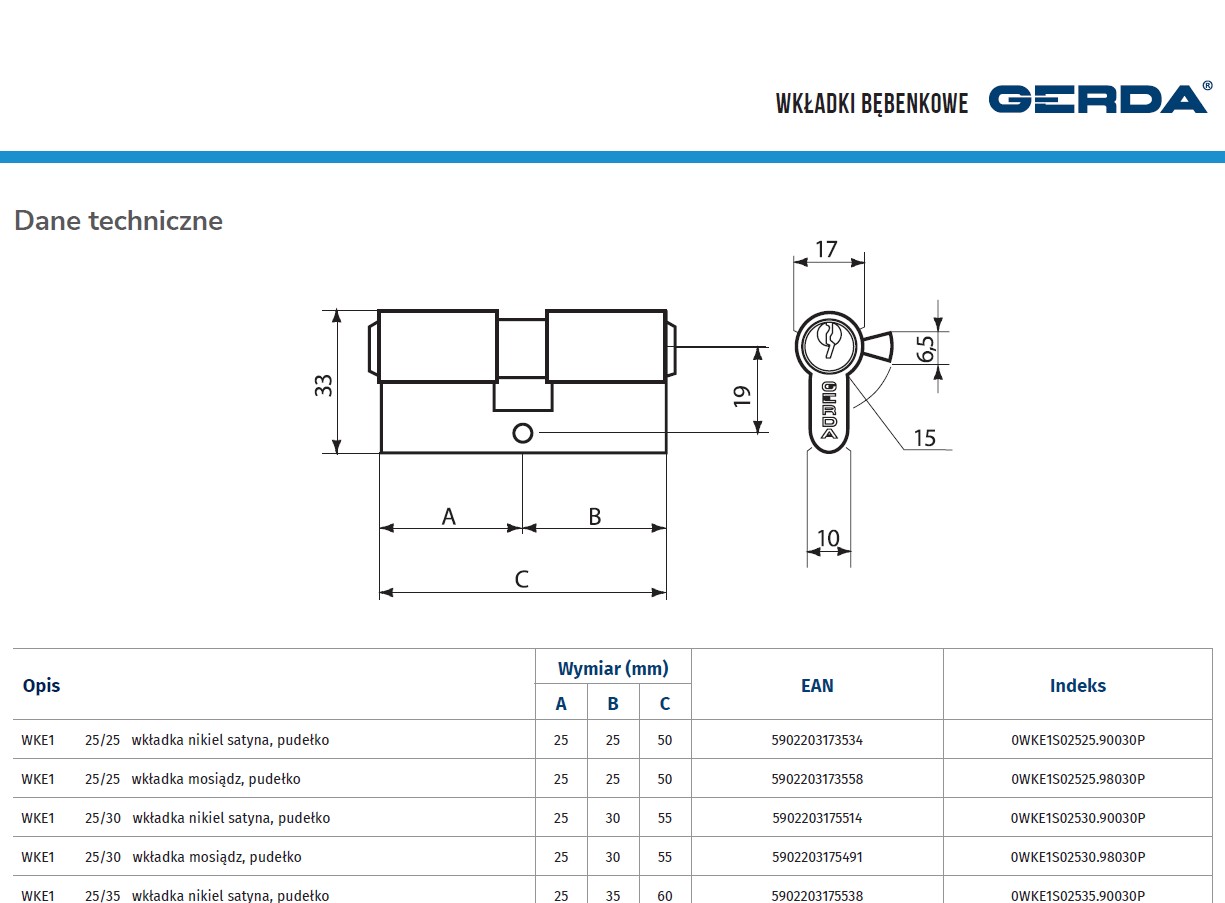 Wkładka Gerda WKE1 to produkt, który łączy sprawdzone technologie z jakością wykonania charakterystyczną dla marki Gerda.