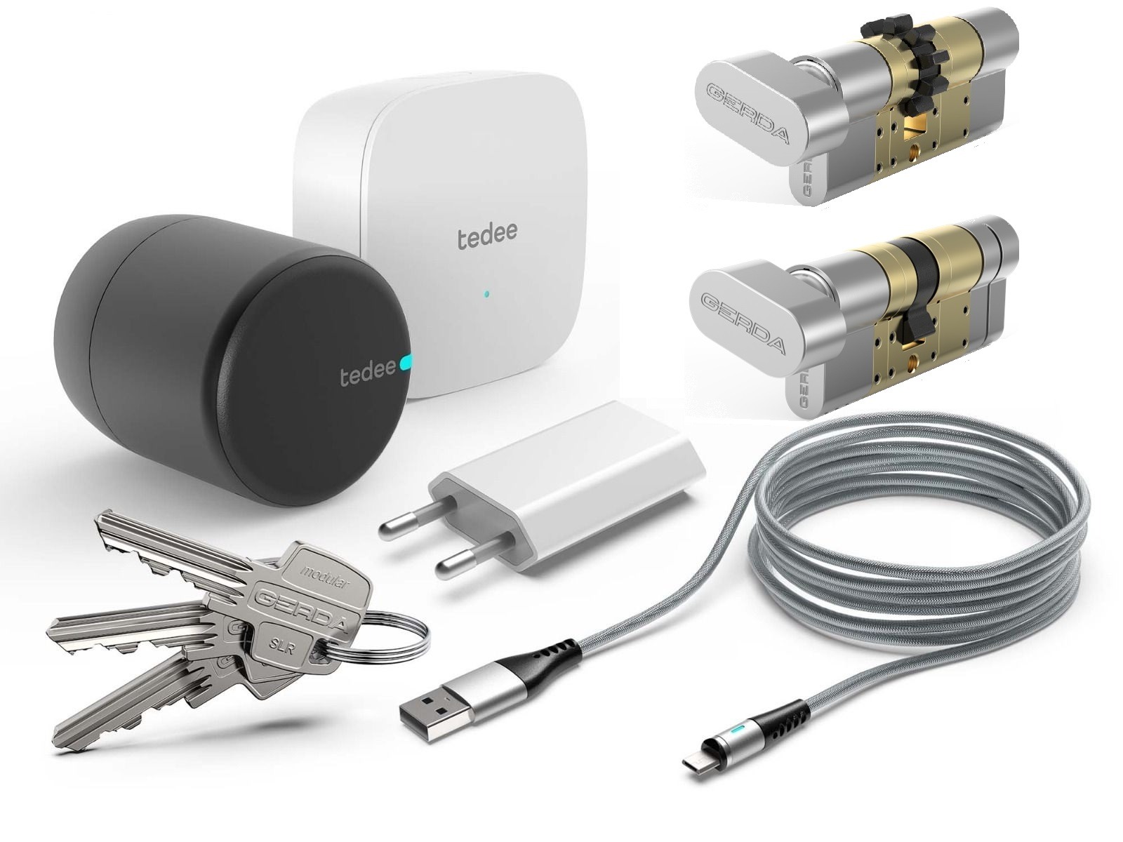 Zamek inteligentny- zestaw tedee PRO grafitowy z bridgem i wkładką EXXO (5 kluczy)
