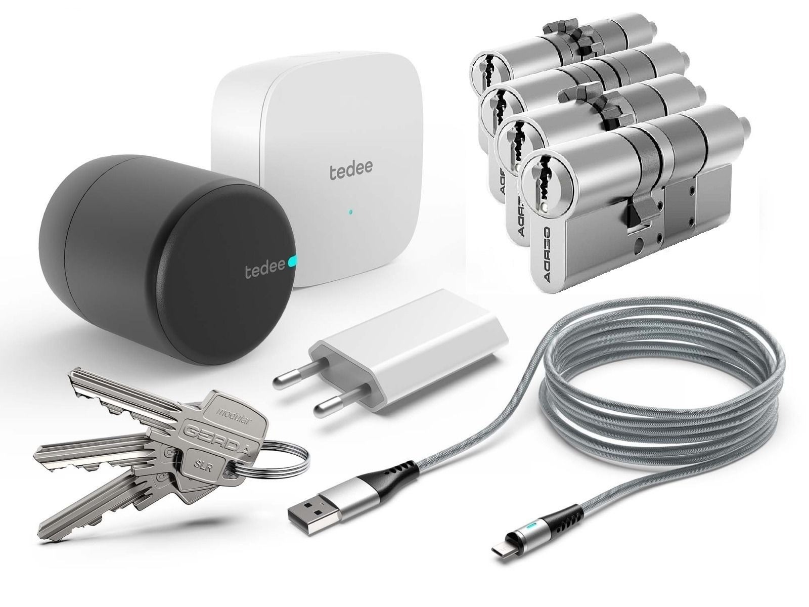 Zamek inteligentny- zestaw tedee PRO grafitowy z bridgem i wkładką modułową (3 klucze)